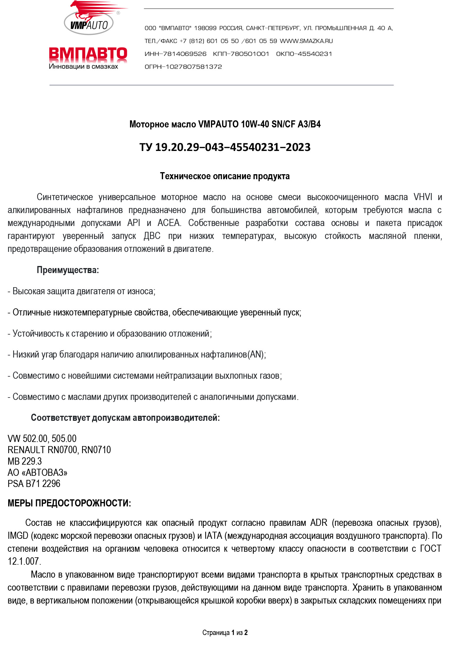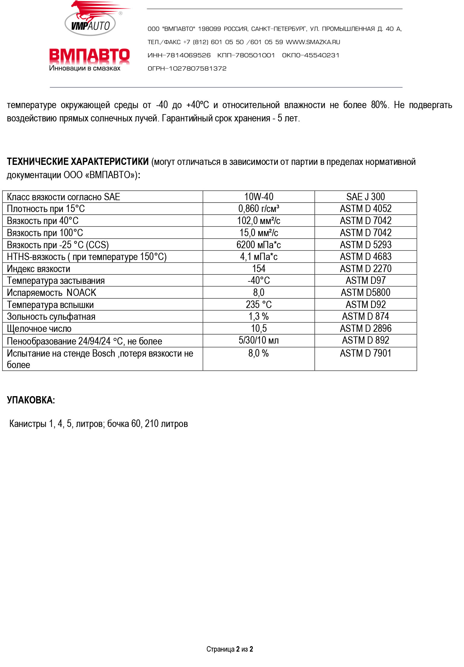Масло моторное ВМПАВТО 10W-40 (20л/17,1кг)